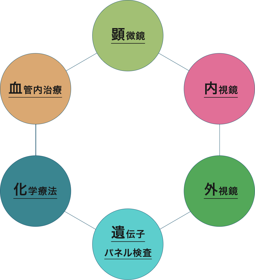 さらに、分子標的薬や免疫療法といった新しい薬も取り入れ、放射線科・病理部とも連携したうえで一人ひとりに合わせた最適な治療法を提案しています。
